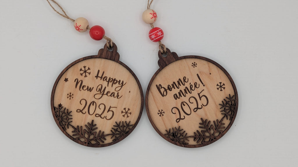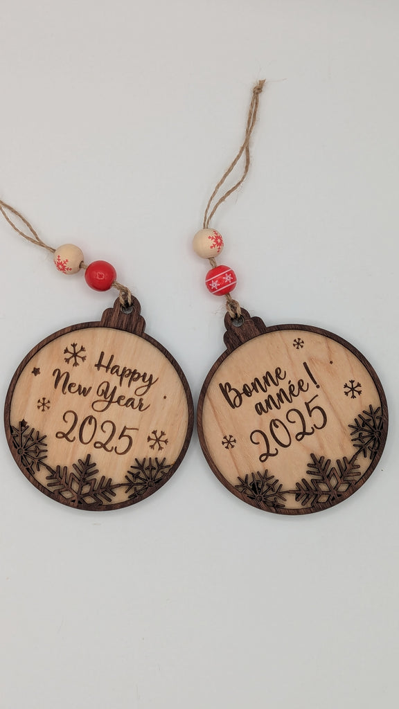 Happy New Year / Bonne année 2026 – Wooden Ornament