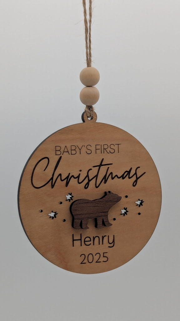 Celebrate the magic of your little one's first Christmas with our enchanting "Baby's First Christmas" ornament. Crafted with love and attention to detail, this delightful ornament captures the joy and wonder of this special milestone. Made of maple and walnut woods, it's the perfect addition to your tree, creating lasting memories for years to come. Made from high-quality materials, this ornament is a timeless keepsake that beautifully commemorates the joyous occasion of your baby's inaugural holiday season. Cherish the moments, spread the cheer, and make this "Baby's First Christmas" ornament a cherished part of your family traditions.